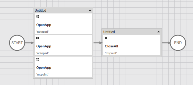앞선 실습에서 사용 해 본 그대로 OpenApp을 사용하여 메모장을 열여준다.