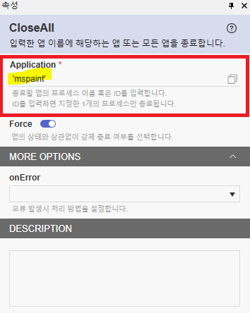 CloseAll의 Application에 'mspaint' 라는 이름을 주면,
